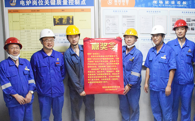 “加油、加油!”6月22日早上,炼钢厂90吨电炉操作室充满着振奋人心的力量。炼钢员工接过公司副总经理程斯祥、何航颁发的嘉奖令和10万元大奖,倍感振奋,倍受鼓舞。近日,炼钢日产量连创新高,具备了日产6200吨以上的能力,6月20日更是一举冲破6500吨大关,创造历史最高日产纪录。这是炼钢厂全体党员“学史力行”,带领全体员...