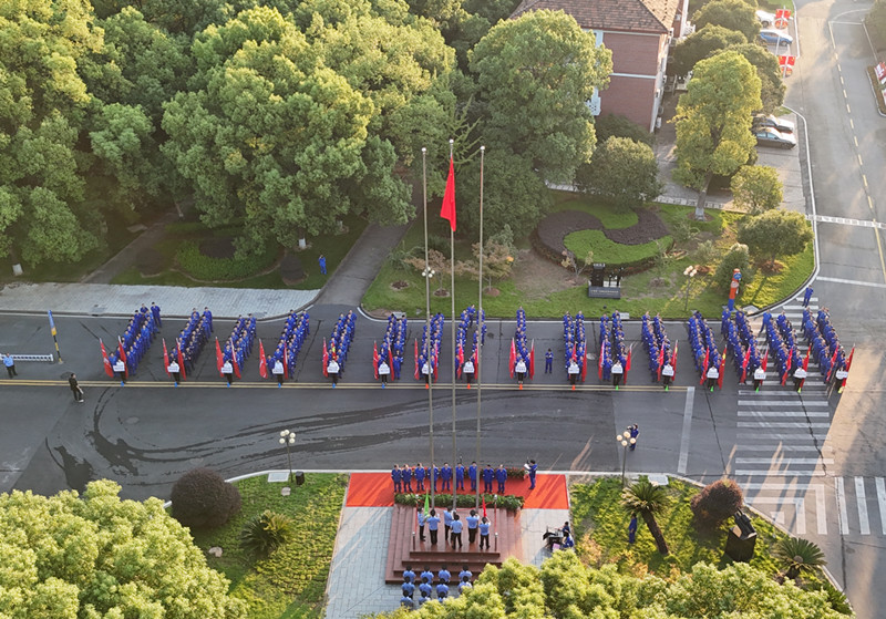 9月30日清晨,迎着东方的旭日,衡钢举行升旗仪式,热烈庆祝中华人民共和国成立75周年。全体在家的公司领导、“三总师”、2023年度劳动模范、各二级单位负责人和员工代表等近400人参加升旗仪式。