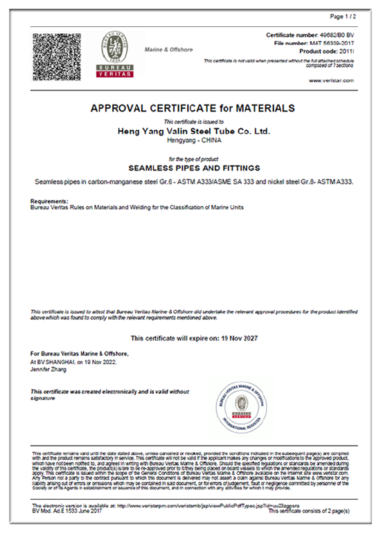 11月底,衡钢顺利收到了法国船级社(简称BV)总部签发的Gr6低温海工管认证证书。此次认证历时两年,是衡钢首次全组距全交付状态的单一钢级船级社扩证。 法国船级社是国际船级社协会12个正式成员之一,属世界领先的检验认证集团。本次获证有利于衡钢进一步开拓低温管线管品种深海市场,建立领先国内同行的优势,可为全球海工管客户提供一站式采购服务。 认证过程中,衡钢各二级生...