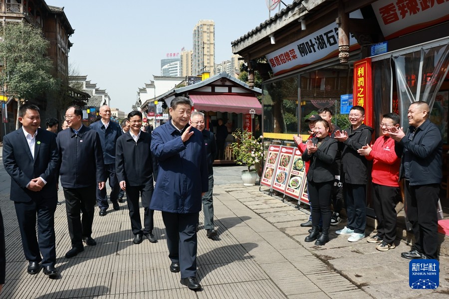 3月18日至21日,中共中央总书记、国家主席、中央军委主席习近平在湖南考察。这是19日上午,习近平在常德河街考察。新华社记者 谢环驰 摄