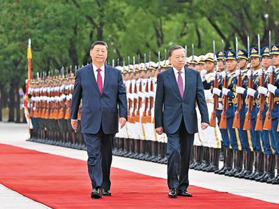 苏林抵达时,礼兵列队致敬。习近平同苏林登上检阅台,军乐团奏中越两国国歌,天安门广场鸣放21响礼炮。苏林在习近平陪同下检阅中国人民解放军仪仗队,并观看分列式。